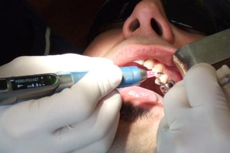 Digital X-ray sensors are used instead of traditional photographic film. These are taken on a daily basis during dental check-ups and identifying a problem affecting the patient. Deep decay, nerve involvement and bone loss are some of the most common situations. There are no harmful chemicals involved as we bypass the steps involved in Developing and Processing X rays which are now obsolete. The image comes up on the screen in less than 8 seconds and saves a lot of time. Using software, the images can be enhanced or modified during diagnostic or treatment planning.